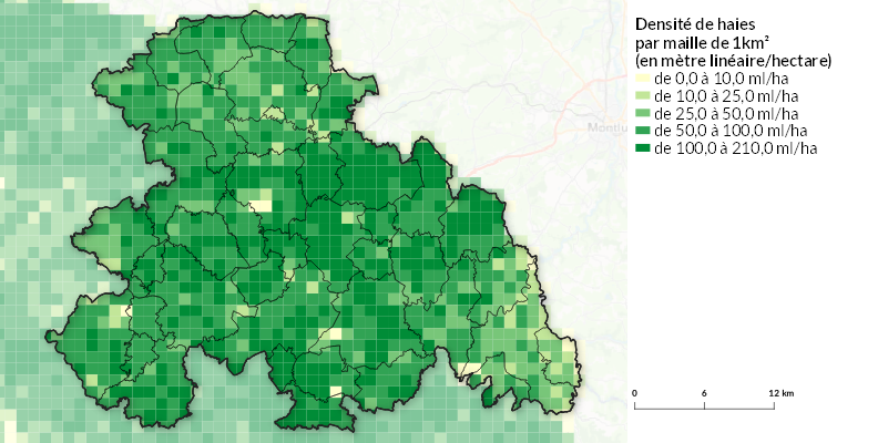 La densité de haie de l'intercommunalité (linéaire de haies par hectare)