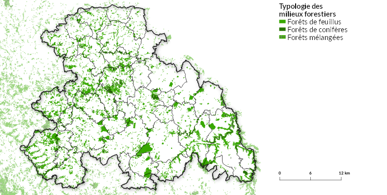 L’intercommunalité est couverte par 31.96 hectares de forêts disparues entre la période du minimum forestier, vers 1850 et les années 2010-2020, soit 3.22 % du territoire.