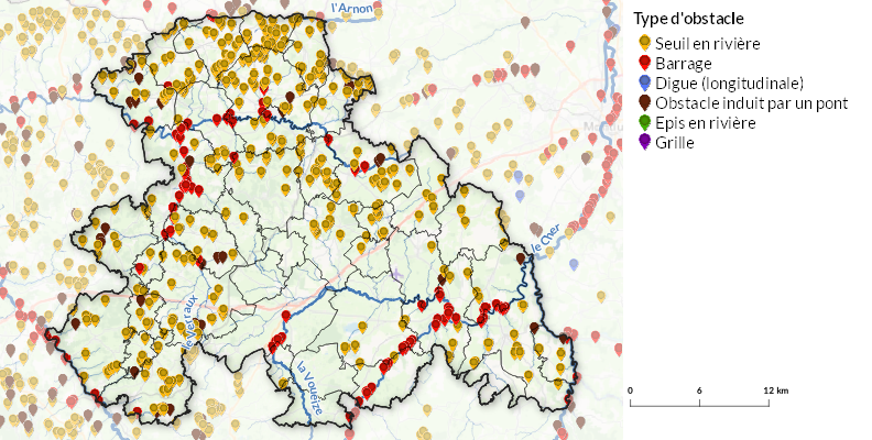Dans le cadre du plan national pour favoriser la continuité écologique et sédimentaire, l’Office Français pour la Biodiversité (OFB) a mis en place un recensement des obstacles susceptibles d’avoir des effets sur ces continuités.