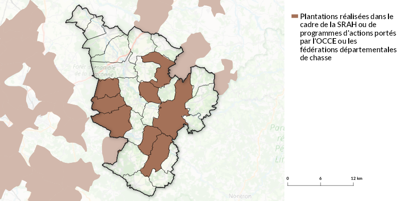 N.B. : L’absence d’informations de plantation ne signifie pas qu’aucune action n’a eu lieu sur votre territoire, des plantations ont pu être réalisées dans le cadre de programme de plantations du Pays du Bocage Bressuirais, du Pays Thouarsais, du Pays de Gâtine, du Pays des Six Vallées, du Pays Montmorillonnais, du Pays Loudunais ou encore dans le cadre du programme Programme d’Entretien et de Valorisation de l’Arbre (EVA) du département de Charente-Maritime