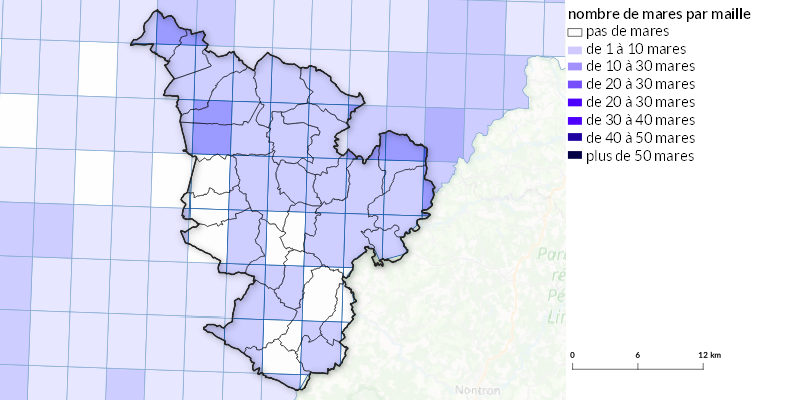 La plupart des mares du territoire picto-charentais sont des créations humaines, notamment pour répondre aux besoins en eau des habitants (mares communautaires), du cheptel ou suite à des activités extractives (argile, marne, pierres meulières). Souvent très riches au niveau botanique, elles jouent également un rôle majeur pour les batraciens (Tritons, Grenouilles...), les reptiles (Couleuvres...) et les libellules.