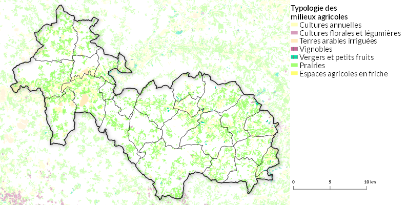 Répartition des différents types de cultures installées sur le territoire :