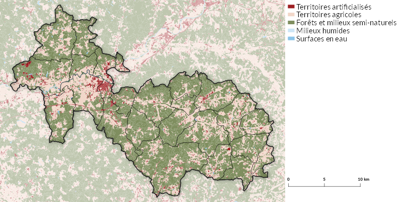 L’intercommunalité est couverte par 35.11 hectares de forêts disparues entre la période du minimum forestier, vers 1850 et les années 2010-2020, soit 8.17 % du territoire.